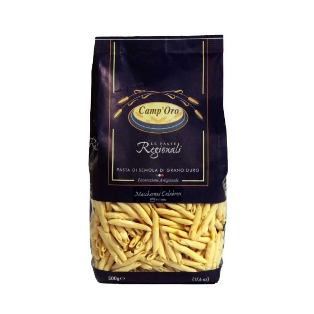 מקרוני קלברזי של CAMP'ORO היא פסטה מסורתית מאזור קלבריה שבדרום איטליה. מיוצרת מסולת חיטה קשה איכותית בתהליך ייצור מסורתי. הצורה הייחודית של צינורות עם חריצים עמוקים מאפשרת אחיזת רוטב מושלמת, במיוחד עם רטבים חריפים ועשירים האופייניים למטבח הקלברזי.